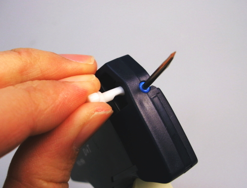 内部に使用されている部品も予備で入っています。 タグガンが打てなくなった際は交換してください。 この部品は、引き金を引いた際に針の発射部にチラリと見えます。これを交換することができます。 |
