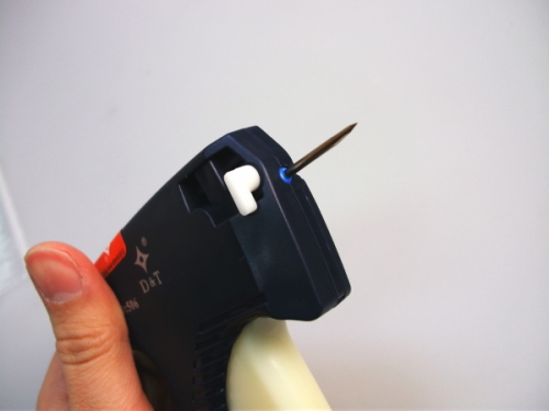 図のようにタグピンを上から入れて使用します。 |