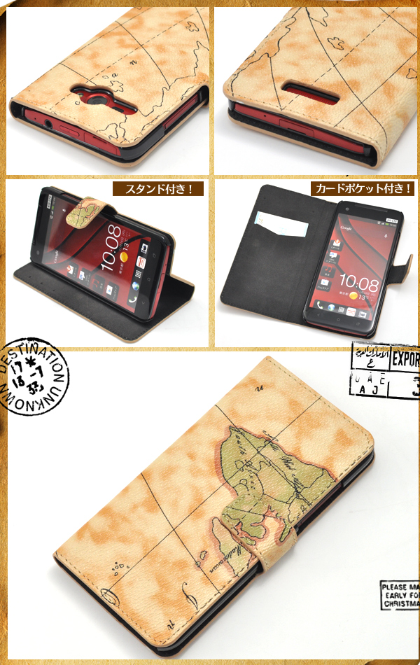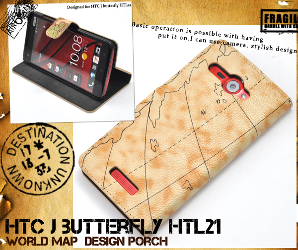 レトロな世界地図デザインがオシャレな、HTC J butterfly HTL21用ケースポーチ!