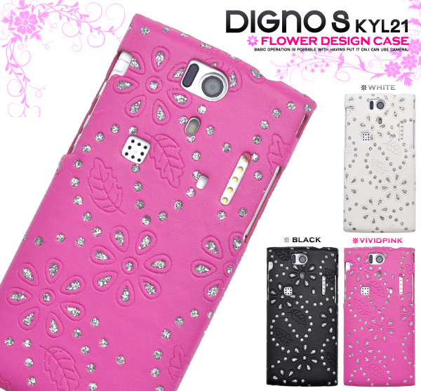 キュートなフラワーデザインのDIGNO S KYL21用ケース フラワーにラメを付けた可愛いデザインケースです。 衝撃やキズ、埃などからしっかりとDIGNO S KYL21を守ります。 カメラはもちろん、各種ボタンなどをケースに入れたまま操作可能です! ブラック、ビビットピンク・ホワイトの3色展開です。 ※ライセンス商品ではありません。※DIGNO S KYL21は付属しません。 ※ラメが取れる場合があります、ご了承ください。 |