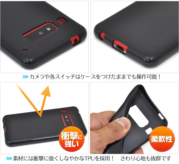 しなやかで衝撃に強い! INFOBAR A03 KYV33用ブラックソフトケース