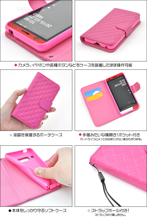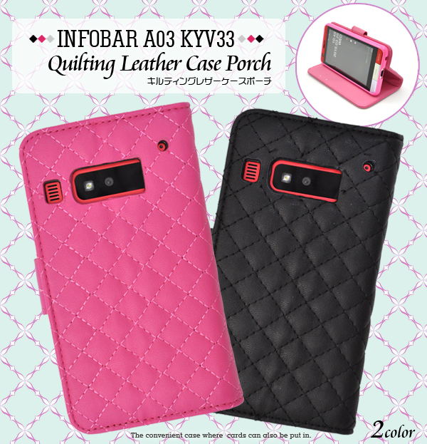 触り心地抜群のキルティングレザーを使用したオシャレなケースポーチです。 内部に備えられたソフトケースでしっかり固定し、 衝撃やキズ、埃などからINFOBAR A03 KYV33をしっかりと守ります。 背面を折り返すとスタンドとして使用できるので、動画視聴に便利です。 ポーチの内側にはポケットが付いているので、カード類を入れるのに便利! ケースを装着したまま、充電やヘッドフォンジャックの接続、カメラや各種ボタンの操作も可能です。 ブラック、ビビットピンクの2色からお選びください。 ※INFOBAR A03 KYV33は付属しません。ライセンス商品ではありません。 ※ケースをつけたまま撮影できますが、フラッシュ撮影時にケースの色が移り込むことがあります。 |