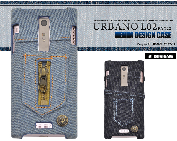 デニム素材を使用した、URBANO L02 KYY22用デニムデザインケース。