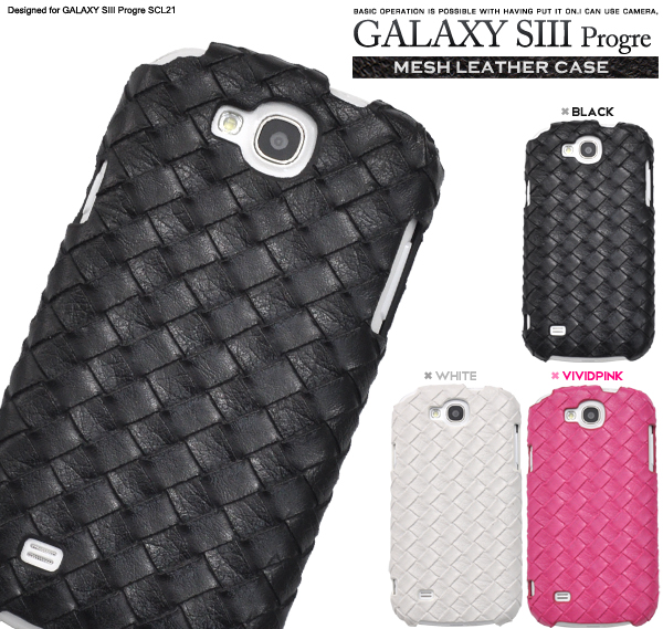 スタイリッシュなメッシュレザーデザインのGALAXY SIII Progre SCL21用ケース 衝撃やキズ、埃などからしっかりとGALAXY SIII Progre SCL21を守ります。 カメラはもちろん、イヤホンや各種ボタンなどをケースに入れたまま操作可能です! ブラック、ホワイト、ビビットピンクの3色展開です。 ※ライセンス商品ではありません。 ※GALAXY SIII Progre SCL21は付属しません。 |