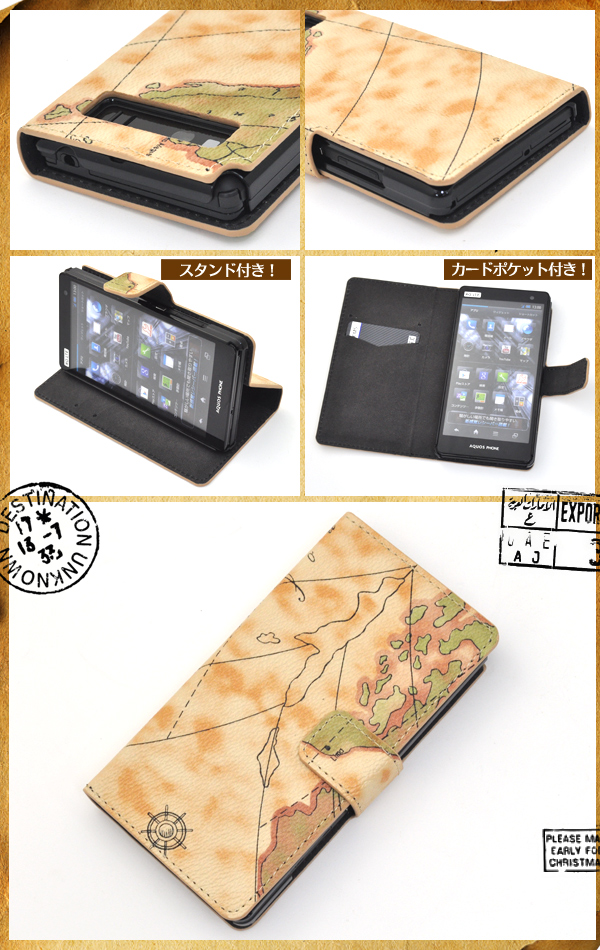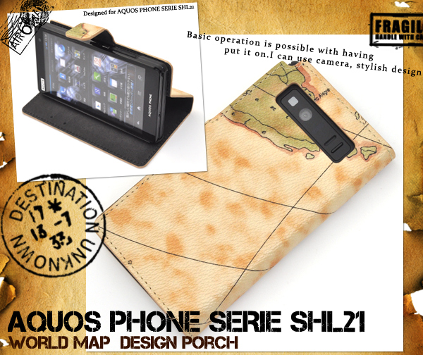 スタイリッシュな地図デザイン!AQUOS PHONE SERIE SHL21用ワールドデザインケースポーチ