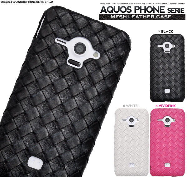 スタイリッシュなメッシュレザーデザインのAQUOS PHONE SERIE SHL22用ケース 衝撃やキズ、埃などからしっかりとAQUOS PHONE SERIE SHL22を守ります。 カメラはもちろん、イヤホンや各種ボタンなどをケースに入れたまま操作可能です! ブラック、ホワイト、ビビットピンクの3色展開です。 ※ライセンス商品ではありません。 ※AQUOS PHONE SERIE SHL22は付属しません。 |