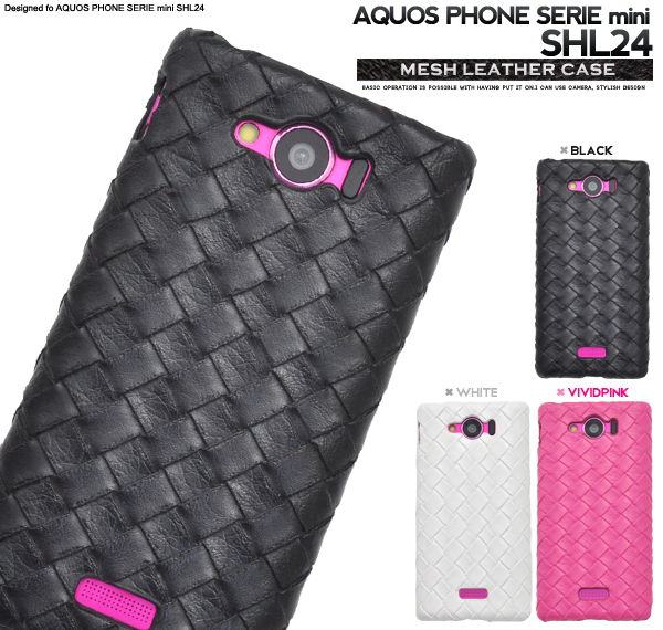 スタイリッシュなメッシュレザーデザインのAQUOS PHONE SERIE mini SHL24用ケース 衝撃やキズ、埃などからしっかりとAQUOS PHONE SERIE miniを守ります。 カメラはもちろん、イヤホンや各種ボタンなどをケースに入れたまま操作可能です! ブラック、ホワイト、ビビットピンクの3色展開です。 ※ライセンス商品ではありません。 ※AQUOS PHONE SERIE mini SHL24は付属しません。 |
