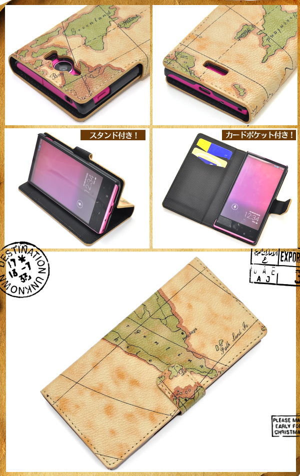 レトロな世界地図デザインがオシャレな、AQUOS PHONE SERIE mini SHL24用ケースポーチ!