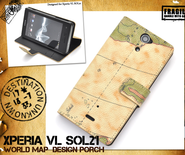レトロな世界地図デザインがオシャレな、Xperia VL SOL21用ケースポーチ!