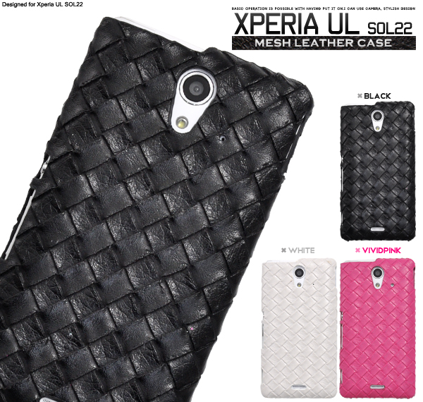スタイリッシュなメッシュレザーデザインのXperia UL SOL22用ケース 衝撃やキズ、埃などからしっかりとXperia UL SOL22を守ります。 カメラはもちろん、イヤホンや各種ボタンなどをケースに入れたまま操作可能です! ブラック、ホワイト、ビビットピンクの3色展開です。 ※ライセンス商品ではありません。※Xperia UL SOL22は付属しません。 ※卓上ホルダ充電には対応していません。 |
