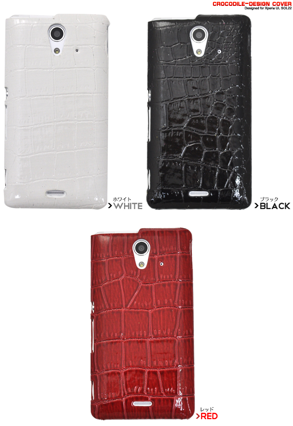 存在感抜群!クロコダイルレザーデザインのXperia UL SOL22用ケース 衝撃やキズ、埃などからしっかりとXperia UL SOL22を守ります。 カメラはもちろん、イヤホンや各種ボタンなどをケースに入れたまま操作可能です! ブラック、レッド、ホワイトの3色展開です。 ※ライセンス商品ではありません。※Xperia UL SOL22は付属しません。 ※卓上ホルダ充電には対応していません。 |