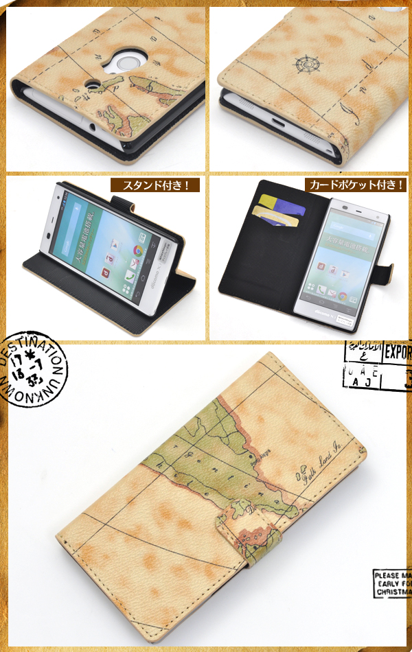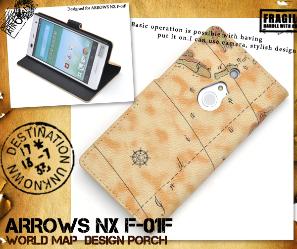 レトロな世界地図デザインがオシャレな、ARROWS NX F-01F用ケースポーチ!