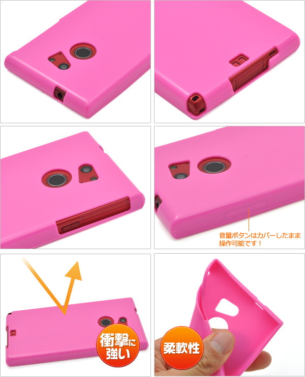 ポップなカラーに美しい光沢感を備えた、ソフトケースです。