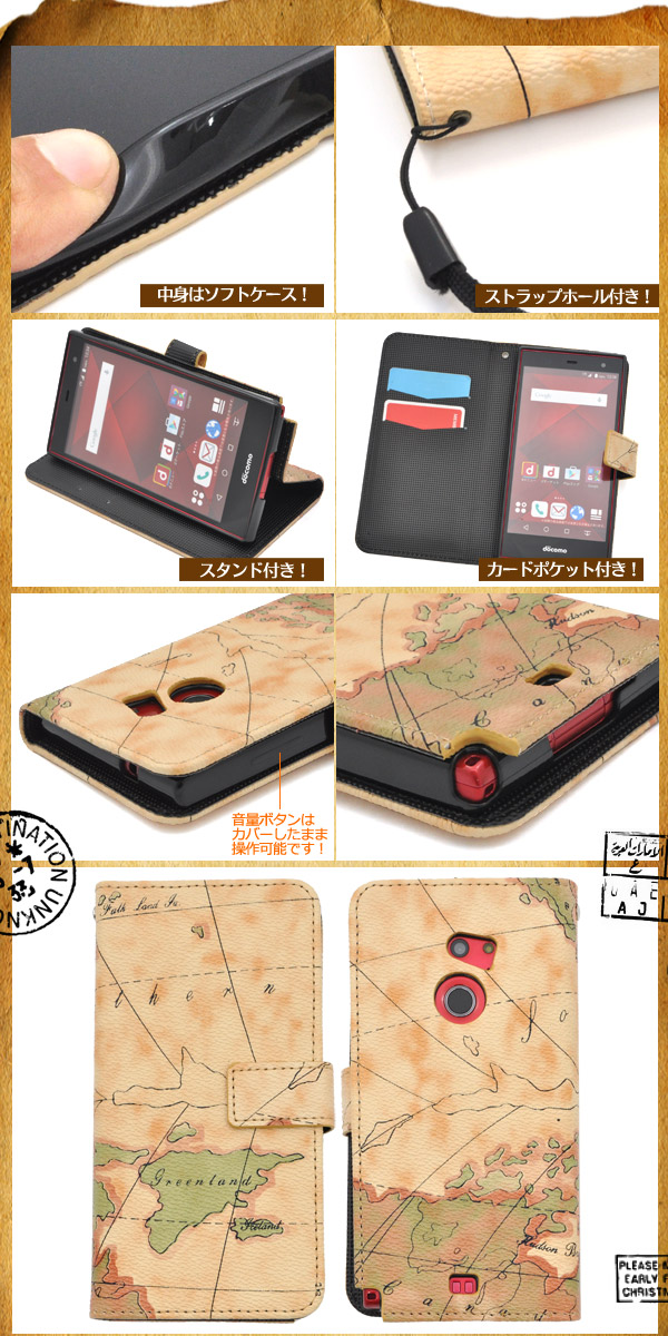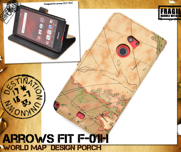 レトロな世界地図デザインがオシャレな、arrows Fit F-01H用ケースポーチ!