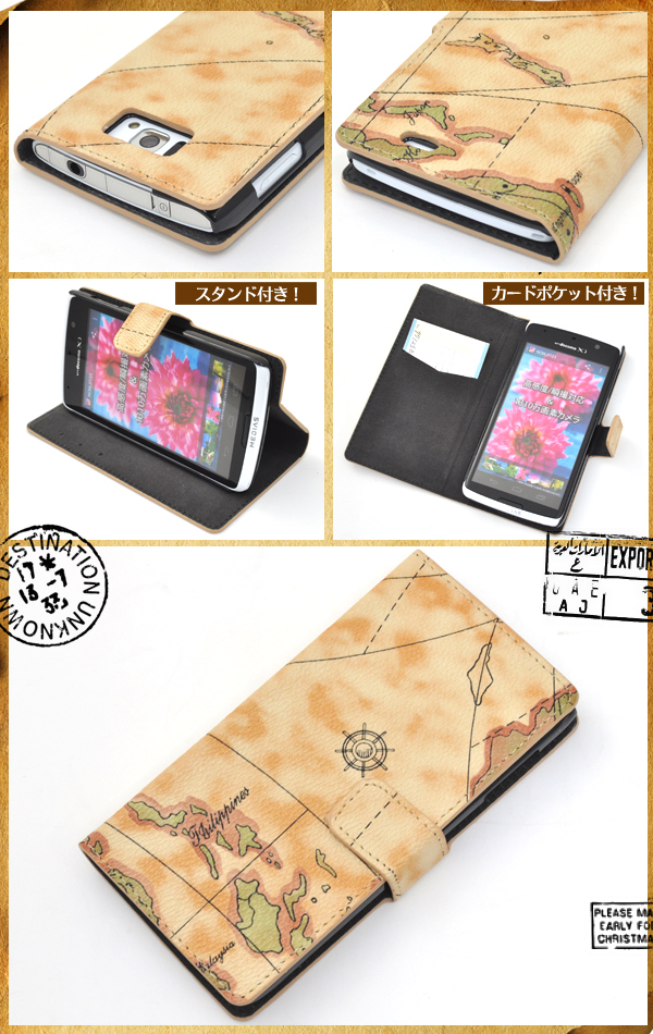 スタイリッシュな地図デザイン!MEDIAS X N-04E用ワールドデザインケースポーチ