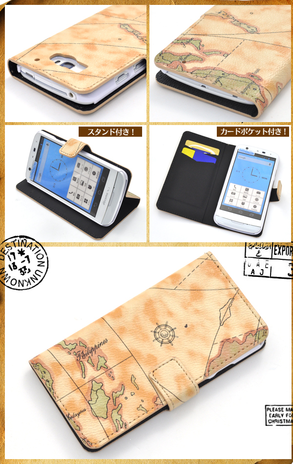 スタイリッシュな地図デザイン!MEDIAS X N-06E用ワールドデザインケースポーチ