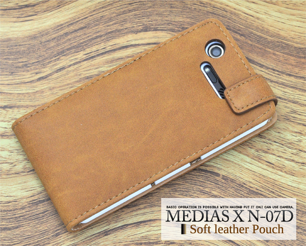 滑らかな触り心地!MEDIAS X N-07D用ソフトレザーケースポーチ