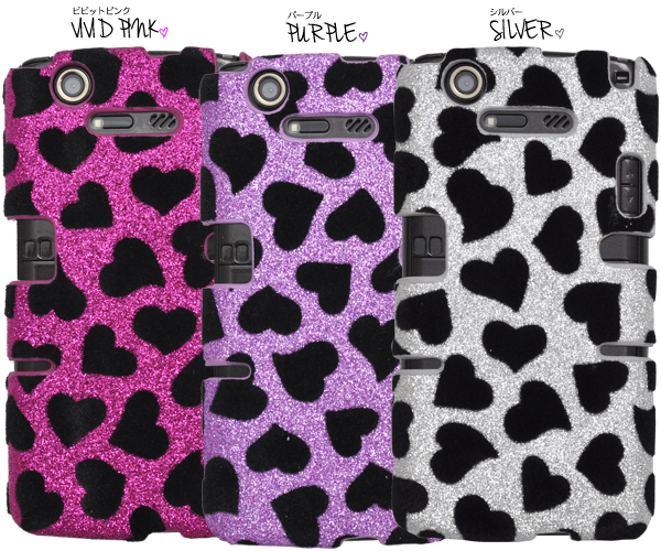 キラキララメにフェルトのハートを付けたキュートなケースです。