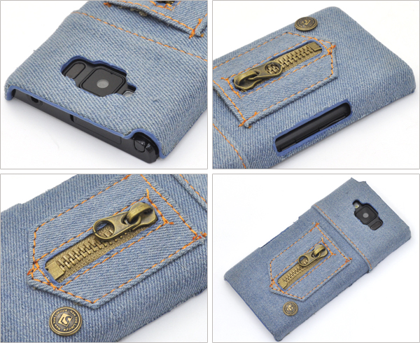 デニム素材を使用した、ELUGA X P-02E用デニムデザインケース。
