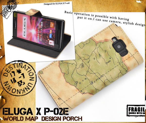 レトロな世界地図デザインがオシャレな、ELUGA X P-02E用ケースポーチ!