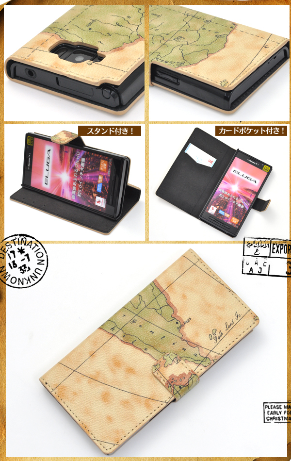 スタイリッシュな地図デザイン!ELUGA X P-02E用ワールドデザインケースポーチ