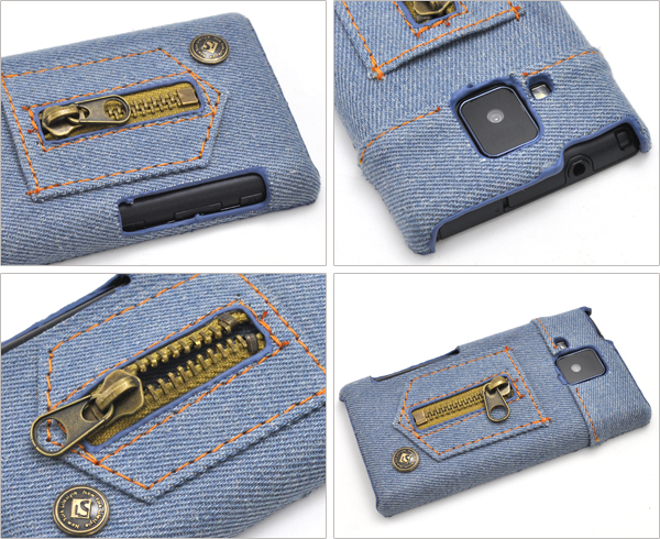 デニム素材を使用した、ELUGA V P-06D用デニムデザインケース。