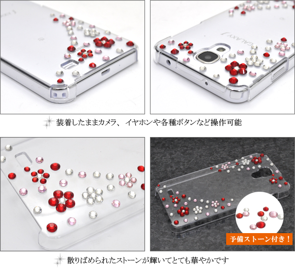 | 注意 | ※GALAXY J SC-02Fは付属しません。 ※ライセンス商品ではありません。 ※衝撃を与えると、ラインストーンが取れる場合があります。 |