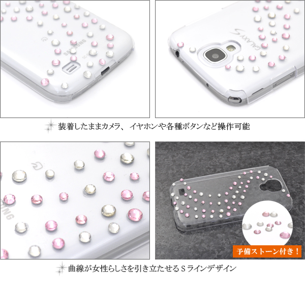 | 注意 | ※GALAXY S4 SC-04Eは付属しません。 ※ライセンス商品ではありません。 ※衝撃を与えると、ラインストーンが取れる場合があります。 |