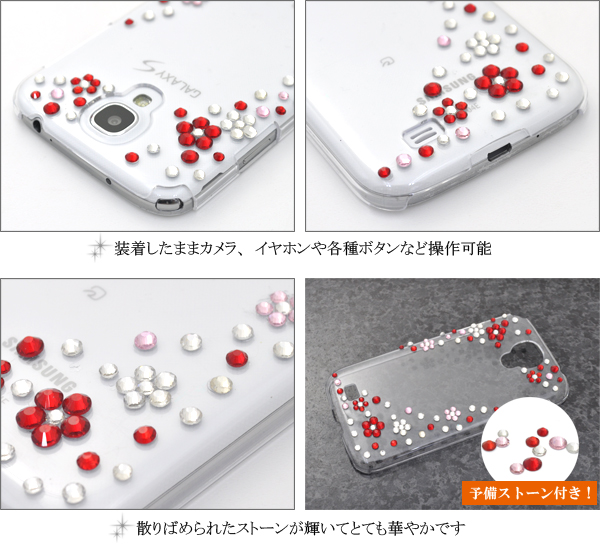 | 注意 | ※GALAXY S4 SC-04Eは付属しません。 ※ライセンス商品ではありません。 ※衝撃を与えると、ラインストーンが取れる場合があります。 |
