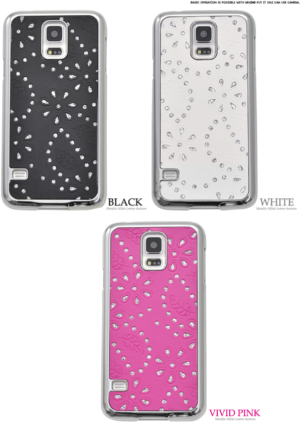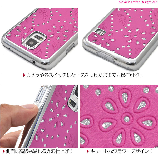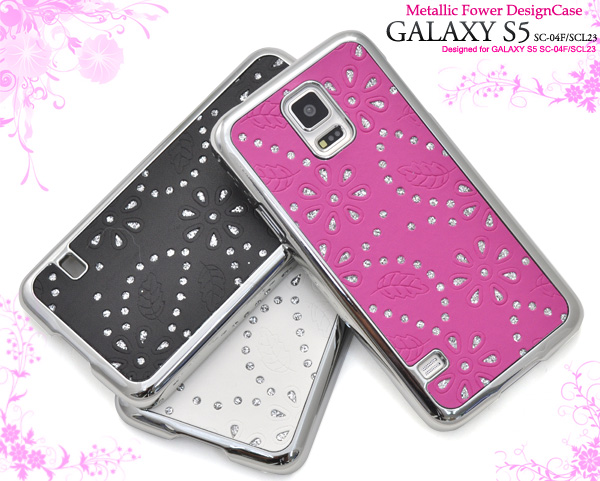 キュートな、GALAXY S5 SC-04F/SCL23用メタリックフラワーデザインケース。