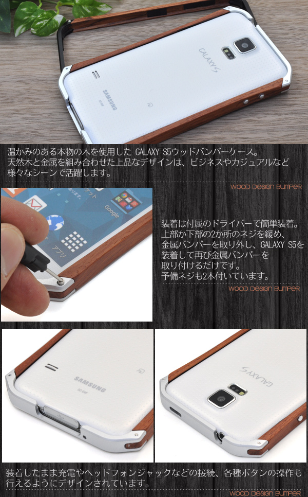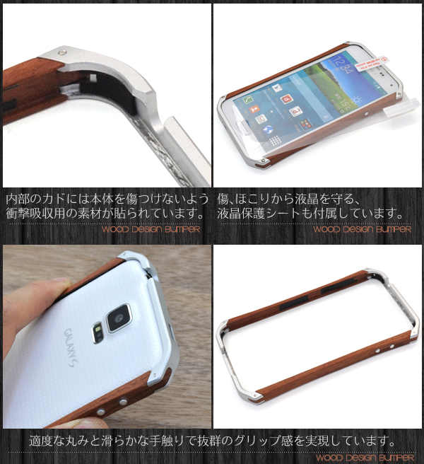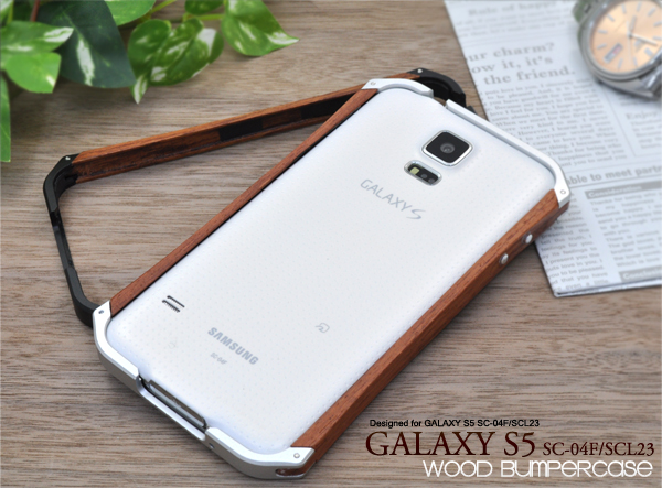 温かみのある本物の木を使用した GALAXY S5ウッドバンパーケース。