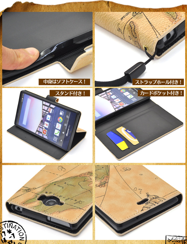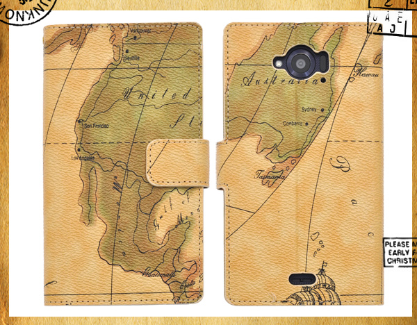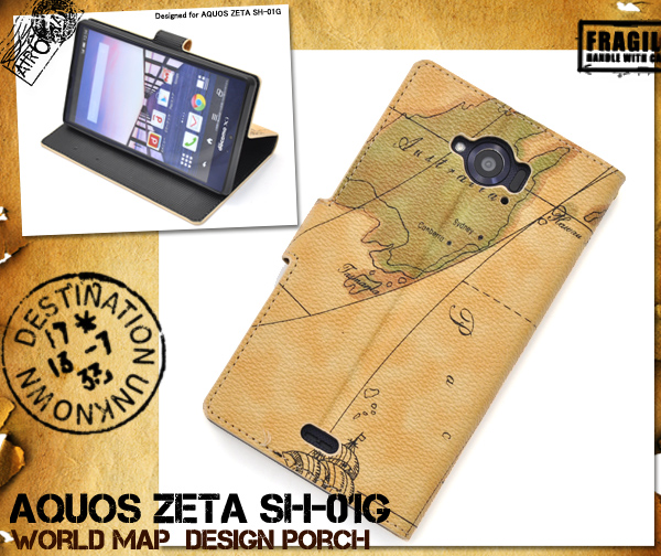 スタイリッシュな地図デザイン!AQUOS ZETA SH-01G用ワールドデザインケースポーチ