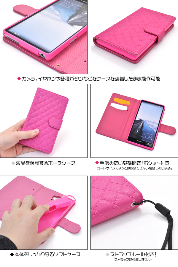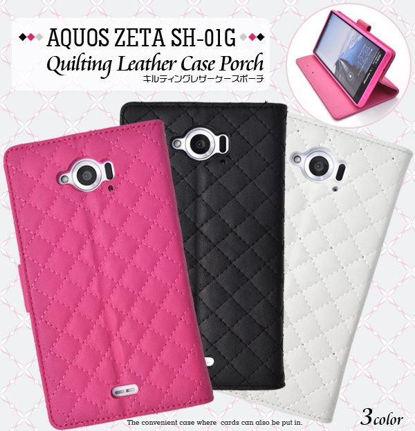 触り心地抜群のキルティングレザーを使用したオシャレなケースポーチです。 内部に備えられたソフトケースでしっかり固定し、 衝撃やキズ、埃などからAQUOS ZETA SH-01Gをしっかりと守ります。 背面を折り返すとスタンドとして使用できるので、動画視聴に便利です。 ポーチの内側にはポケットが付いているので、カード類を入れるのに便利! ケースを装着したまま、充電やヘッドフォンジャックの接続、カメラや各種ボタンの操作も可能です。 ブラック、ビビットピンク、ホワイトの3色からお選びください。 ※AQUOS ZETA SH-01Gは付属しません。ライセンス商品ではありません。 ※ケースをつけたまま撮影できますが、フラッシュ撮影時にケースの色が移り込むことがあります。 |