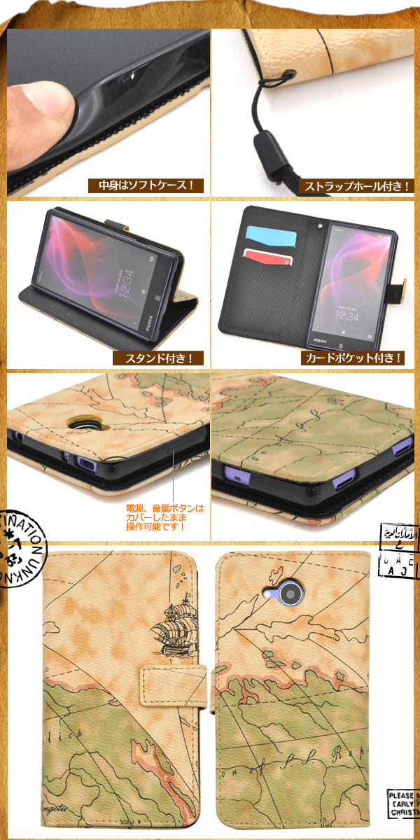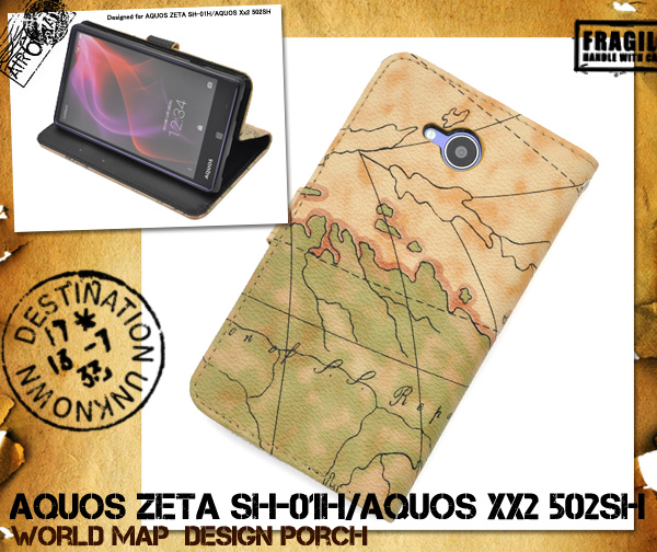 レトロな世界地図デザインがオシャレな、AQUOS ZETA SH-01H/AQUOS Xx2 502SH用ケースポーチ!