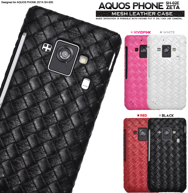 スタイリッシュなメッシュレザーデザインのAQUOS PHONE ZETA SH-02E用ケース 衝撃やキズ、埃などからしっかりとAQUOS PHONE ZETAを守ります。 カメラはもちろん、イヤホンや各種ボタンなどをケースに入れたまま操作可能です! ブラック、ホワイト、レッド、ビビットピンクの4色展開です。 ※ライセンス商品ではありません。 ※AQUOS PHONE ZETA SH-02Eは付属しません。 |