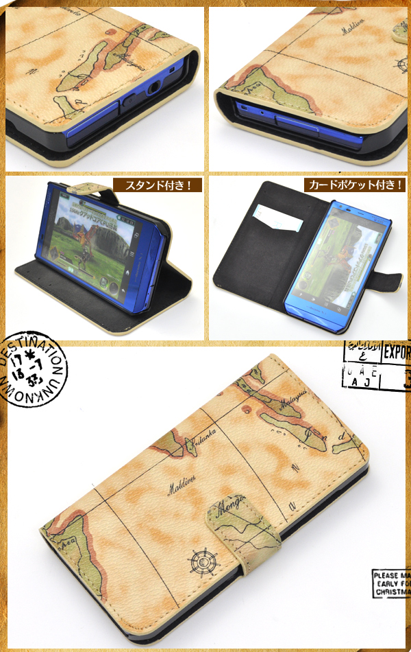 スタイリッシュな地図デザイン!AQUOS PHONE ZETA SH-02E用ワールドデザインケースポーチ