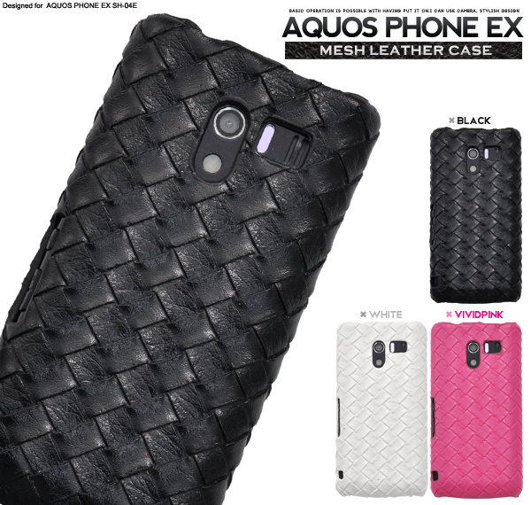 スタイリッシュなメッシュレザーデザインのAQUOS PHONE EX SH-04E用ケース 衝撃やキズ、埃などからしっかりとAQUOS PHONE EX SH-04Eを守ります。 カメラはもちろん、イヤホンや各種ボタンなどをケースに入れたまま操作可能です! ブラック、ホワイト、ビビットピンクの3色展開です。 ※ライセンス商品ではありません。 ※AQUOS PHONE EX SH-04Eは付属しません。 |