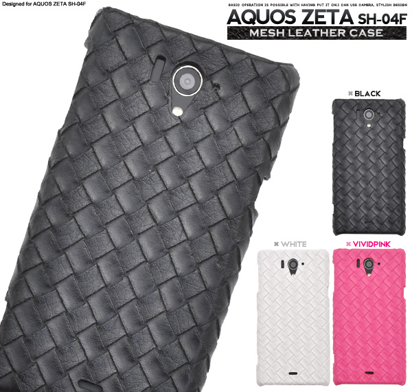 スタイリッシュなメッシュレザーデザインのAQUOS ZETA SH-04F用ケース 衝撃やキズ、埃などからしっかりとAQUOS ZETA SH-04Fを守ります。 カメラはもちろん、イヤホンや各種ボタンなどをケースに入れたまま操作可能です! ブラック、ホワイト、ビビットピンクの3色展開です。 ※ライセンス商品ではありません。※AQUOS ZETA SH-04Fは付属しません。 |