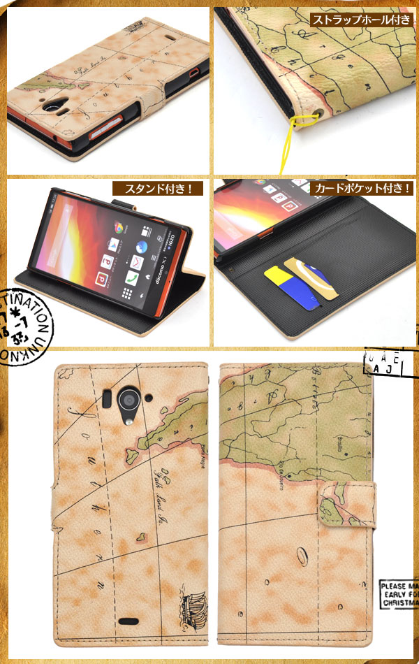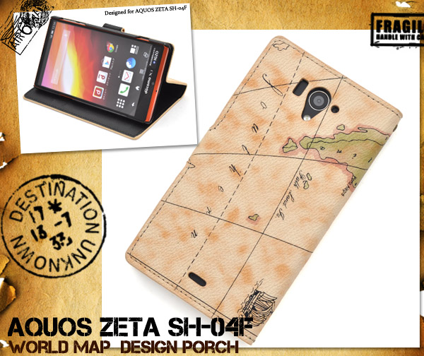 スタイリッシュな地図デザイン!AQUOS ZETA SH-04F用ワールドデザインケースポーチ