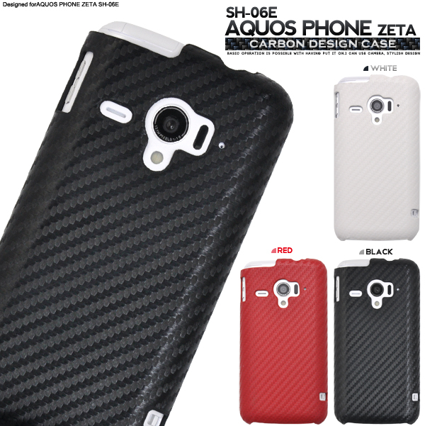 スタイリッシュなカーボンデザインのAQUOS PHONE ZETA SH-06E用ケース 衝撃やキズ、埃などからしっかりとAQUOS PHONE ZETAを守ります。 カメラはもちろん、イヤホンや各種ボタンなどをケースに入れたまま操作可能です! ブラック、ホワイト、レッドの3色展開です。 ※ライセンス商品ではありません。 ※AQUOS PHONE ZETA SH-06Eは付属しません。 |