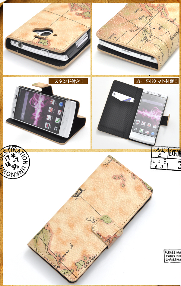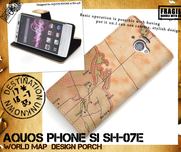 レトロな世界地図デザインがオシャレな、AQUOS PHONE si SH-07E用ケースポーチ!