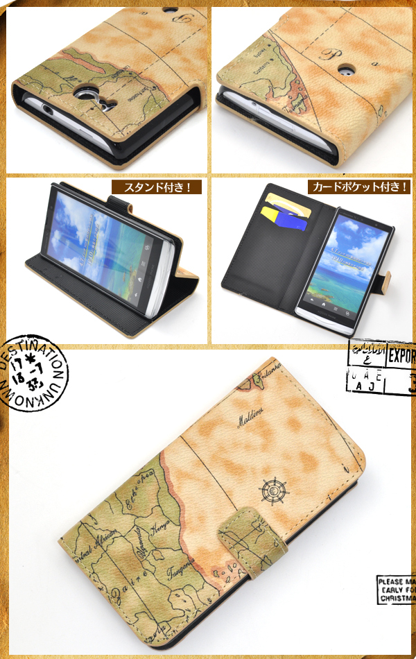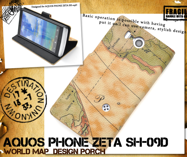 レトロな世界地図デザインがオシャレな、AQUOS PHONE ZETA SH-09D用ケースポーチ!
