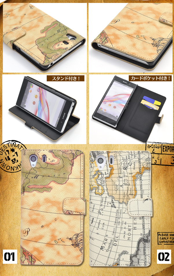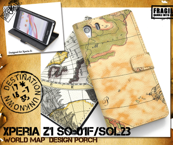 スタイリッシュな地図デザイン!Xperia Z1(SO-01F/SOL23)用ワールドデザインケースポーチ