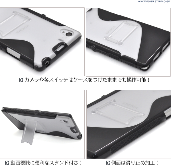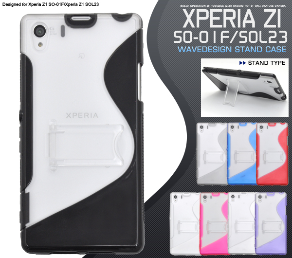 動画視聴に便利なスタンド付き!Xperia Z1(SO-01F/SOL23)用ウェーブデザインスタンドケース