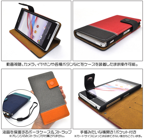 カラフルなツートーン配色のケースポーチです。 内部に備えられたプラスチックケースでしっかり固定し、 衝撃やキズ、埃などからXperia Z1 SO-01F/SOL23をしっかりと守ります。 背面を折り返すとスタンドとして使用できるので、動画視聴に便利です。 ポーチの内側にはポケットが付いているので、カード類を入れるのに便利! ケースを装着したまま、充電やヘッドフォンジャックの接続、カメラや各種ボタンの操作も可能です。 ブルー、レッド、オレンジの3色からお選びください。 ※Xperia Z1 SO-01F/SOL23は付属しません。ライセンス商品ではありません。 ※ケースをつけたまま撮影できますが、フラッシュ撮影時にケースの色が移り込むことがあります。 |