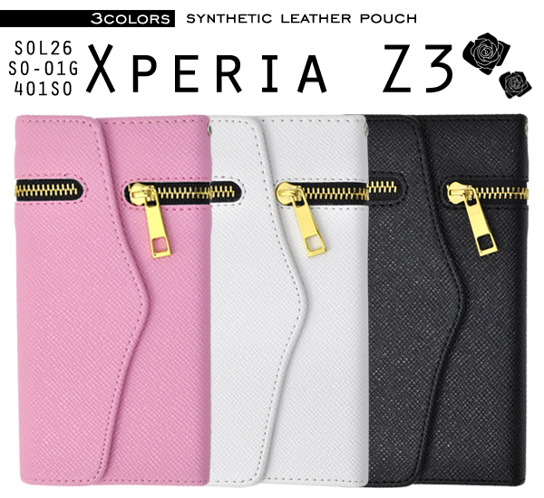 Xperia Z3(SOL26/SO-01G/401SO)用♪3つ折りレザーポーチ
