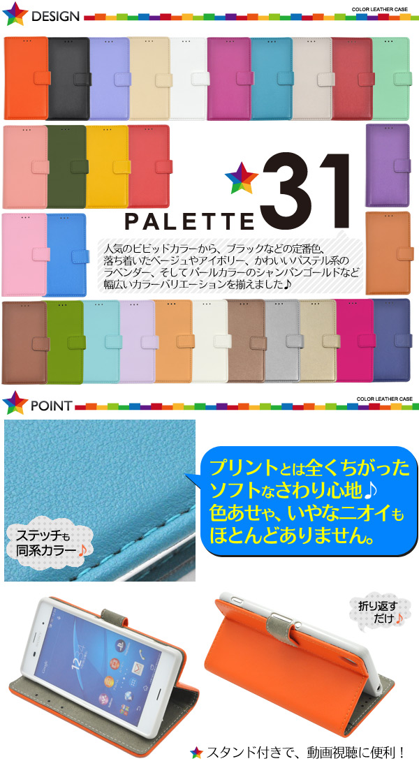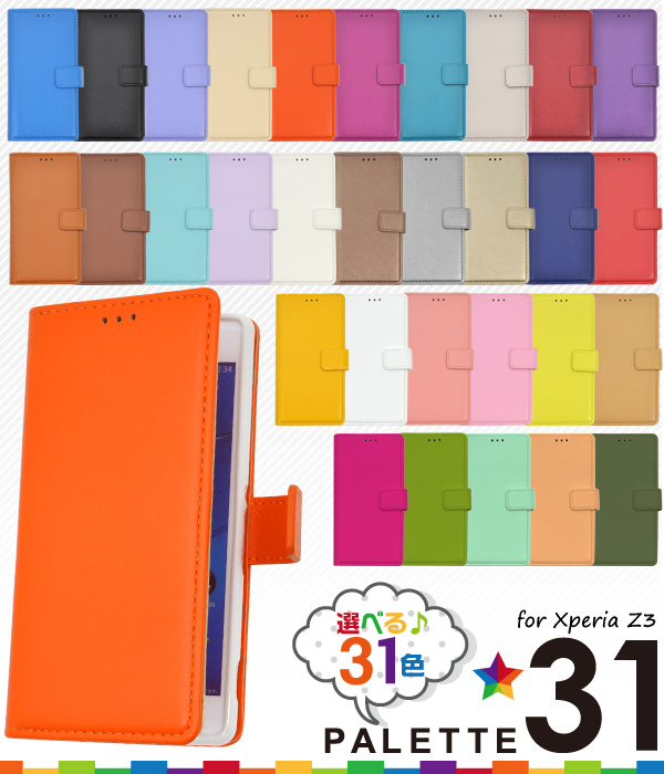プリントとは全くちがった ソフトなさわり心地! Xperia Z3(SOL26/SO-01G/401SO)用31色カラーレザーケースポーチ |