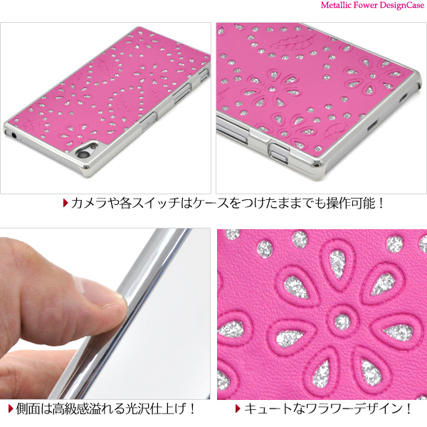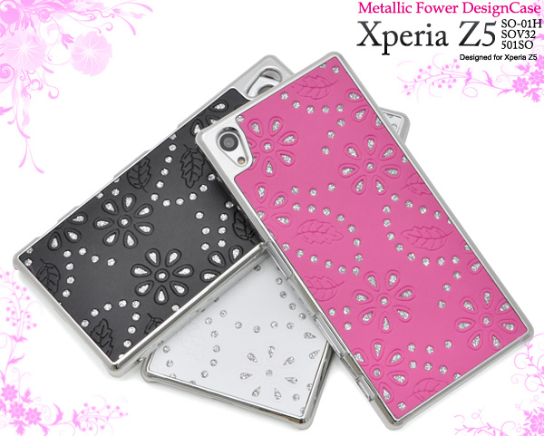 Xperia Z5用メタリックフラワーデザインケース。