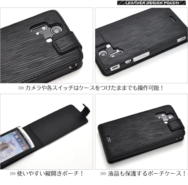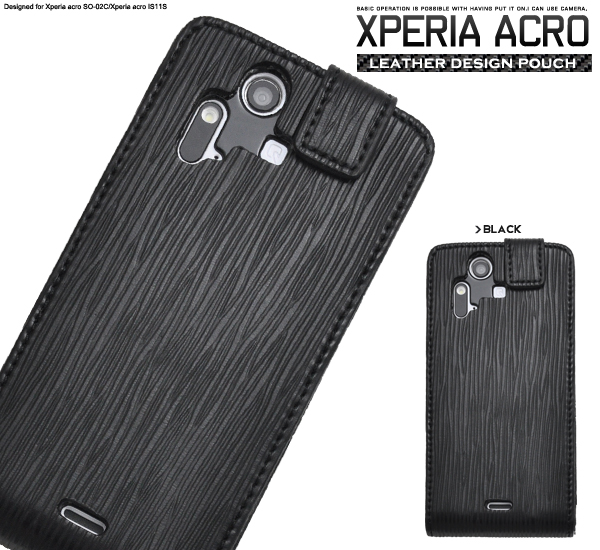 高級感溢れるストレートレザーデザインのXperia acro専用ケースポーチ。