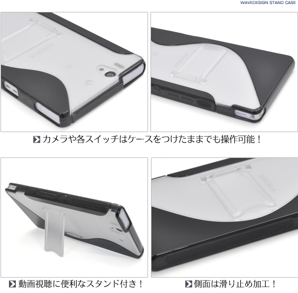 動画視聴に便利なスタンド付き!Xperia Z SO-02E専用ウェーブデザインスタンドケース